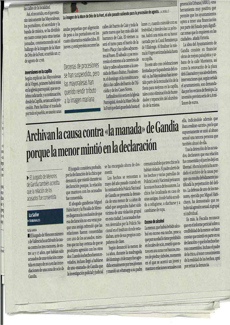 Miguel Habichayn, el despacho de MH abogados consigue archivar el Caso de la Manada de Gandía, probando que la menor mintió en su declaración, MH abogados recaba las pruebas suficientes para demostrar que las relaciones mantenidas con los acusados fueron consentidas.