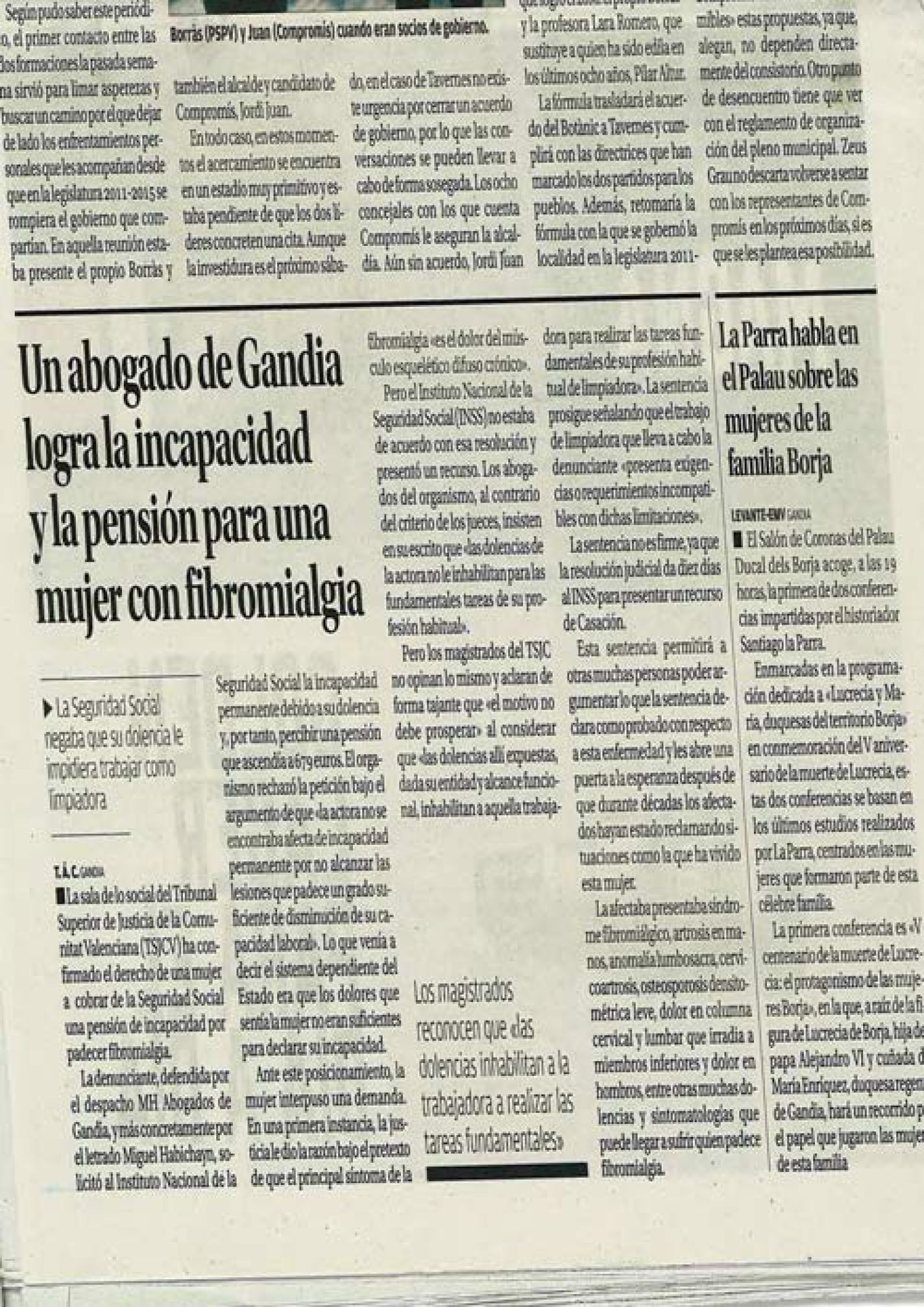 En esta Sentencia firme obtenida por MH Abogados, el Tribunal Superior de Justicia de la Comunidad Valenciana confirma la Sentencia de Primera Instancia que otorga la incapacidad permanente a nuestra representada.